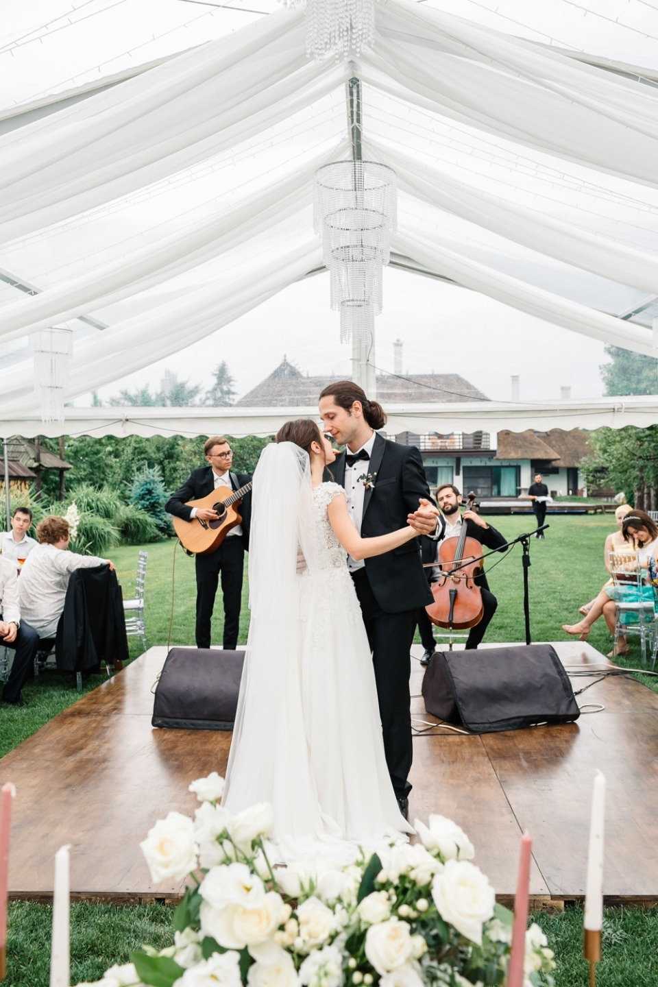 Самым неожиданным и приятным сюрпризом сразу после церемонии стал подарок от наших подруг, которые исполнили песню собственного сочинения. Уже когда все гости заняли свои места за столами, грянул гром и начался ливень. Дождь был приятный и летний. Многие выходили под ним погулять. Гостей в этот день ждало много сюрпризов: мастер-класс по ирландским танцам, выступление нашей музыкальной группы, сюрприз от Димы в виде «нашей» песни, которую он исполнил под гитару, веселые конкурсы, долгожданный танец и сказочный торт.