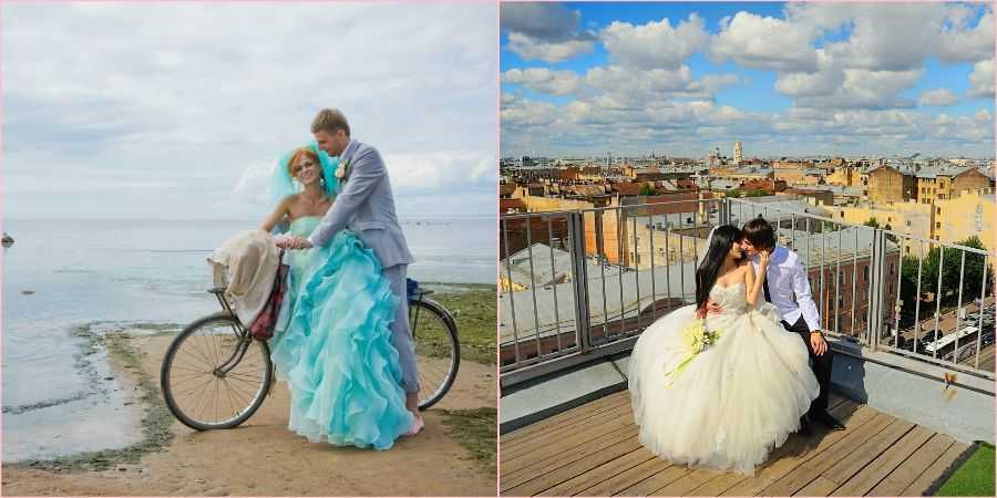 Можно прокатиться в лодочке или на лошадях, спортивным парам наверняка приглянется активный отдых, например, катание на велосипеде или роликах, можно организовать свою церемонию на крыше какой-нибудь высотки или в горах. В общем, фантазируйте, идей куча, стоит лишь определиться, как именно Вы хотите отметить свой день.