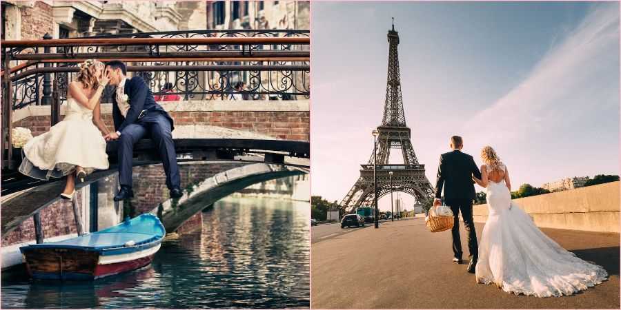 - Европа: в Словении, Венгрии, Германии, Австрии, Италии, Греции, Ирландии, Польше, Чехии, Франции и Испании. Умопомрачительные пейзажи, аристократические замки и виллы, около озера или леса. Воздух, буквально пропитан романтикой, интересные улочки, все это, конечно, европейские города, которые часто пленят влюбленные сердца;