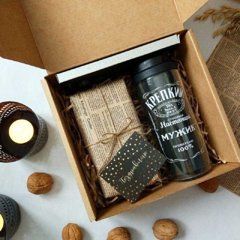 Для первого варианта подарка нам понадобится: любимый напиток вашего мужчины, несколько видов орехов, шоколад.