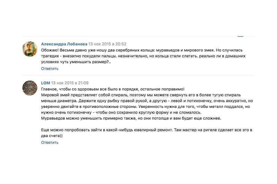 Пример хорошей работы с обратной связью. Покупательница задаёт вопрос в группе ювелирного магазина LOM, и ей помогают решить её проблему